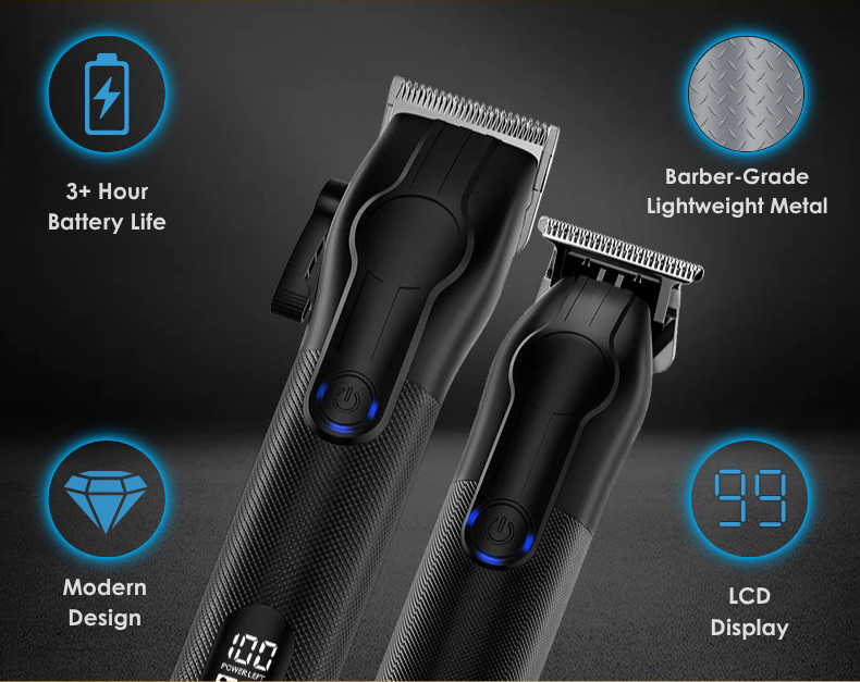 Customers like the barber grade lightweight metal quality, and value for money. They mention the clippers cut through hair like butter, and the trimmer cuts sharp and precise without skin irritation. They say it's well worth the money and has a fantastic battery life. The customers are a mixture of home users, pro barbers, and gift givers. Many note how the special blend system is a game changer and makes fading easy. They say it's easy to use and reliable.